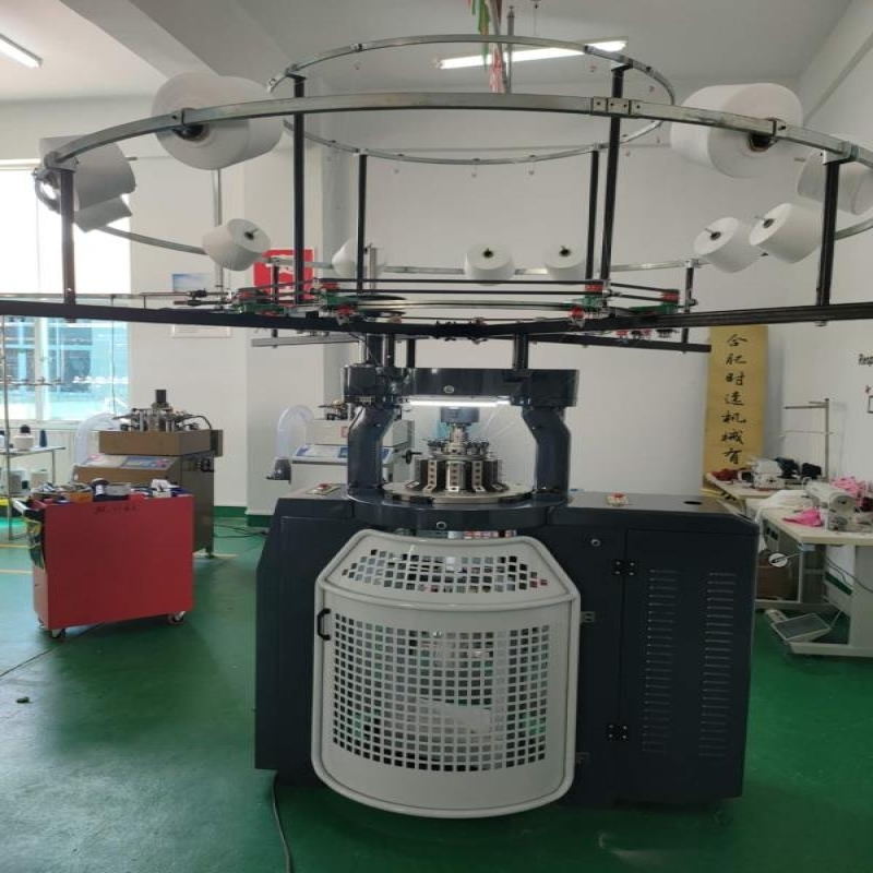 Circular knitting protective suit rib cuff knitting machine can make high definition beanie and scarf with high speed.